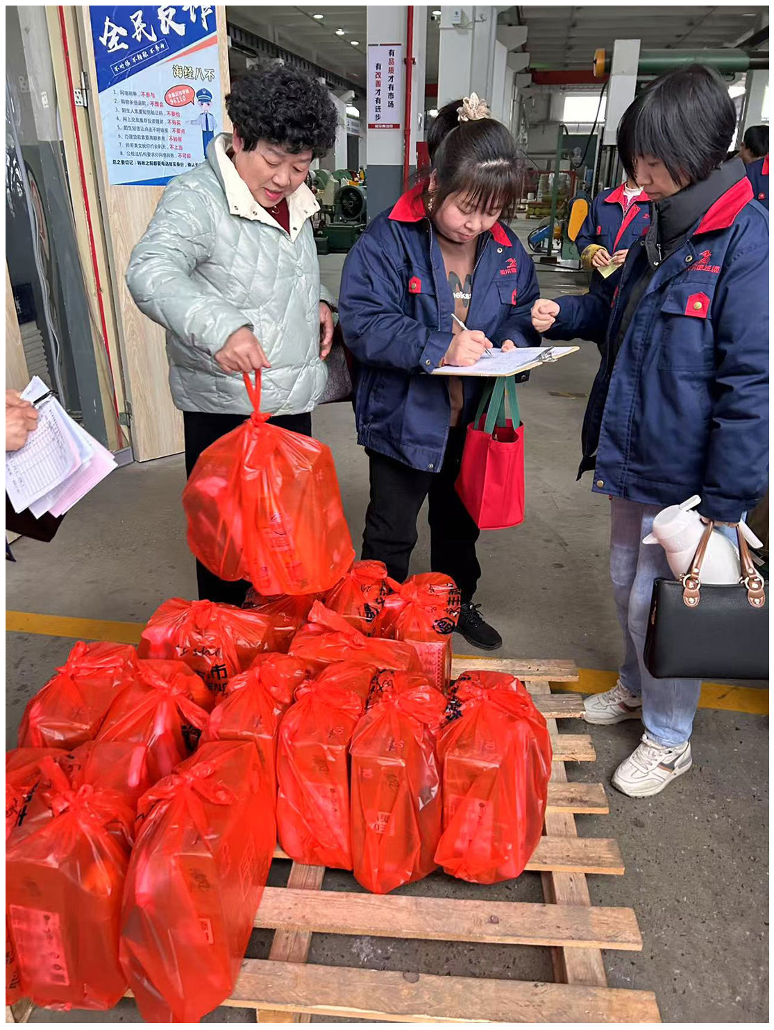 忙碌一天后,车间女职工结束工作来到指定点领取福利。她们带着工作的疲惫从生产线走来,可接过福利礼包时,笑容立刻驱散倦意。一位女工感叹,这暖心福利让她真切感受到公司关怀。大家拿着礼包相互交流,让忙碌的车间也满是温馨欢乐。
